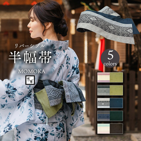 通常の帯より幅が細くて軽く、扱いやすいカジュアル帯。