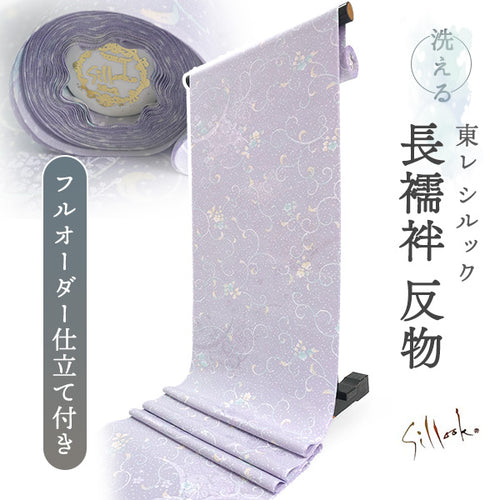 長襦袢 洗える 反物 東レ シルック 綸子 薄紫 唐草 四季花地紋 フルオーダー 仕立て付き 女性 レディース 襦袢 長襦袢 和装 和服 きもの インナー おしゃれ TORAY sillook
