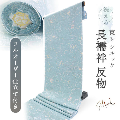 長襦袢 洗える 反物 東レ シルック 綸子 ブルー 唐草 四季花地紋 フルオーダー 仕立て付き 女性 レディース 襦袢 長襦袢 和装 和服 きもの インナー おしゃれ TORAY sillook