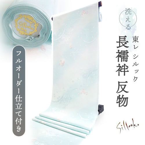 長襦袢 洗える 反物 東レ シルック 綸子 ホワイト ブルー 更紗 四季花地紋 フルオーダー 仕立て付き 女性 レディース 襦袢 長襦袢 和装 和服 きもの インナー おしゃれ TORAY sillook