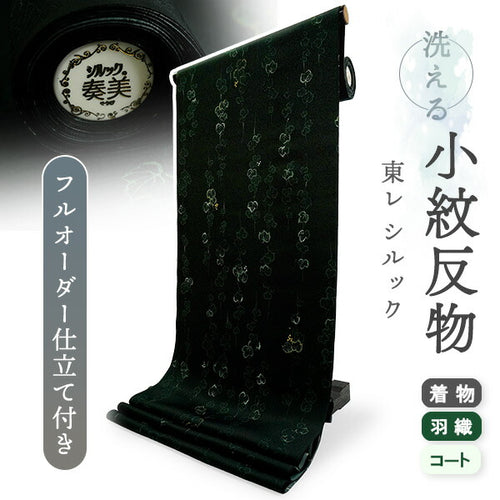 洗える着物 小紋 反物 東レシルック フルオーダー仕立て付 ブラック 裂取り 花 美しいキモノ掲載 ぴったり自分サイズにお仕立てで着姿きれい 袷も単衣もオールシーズン対応