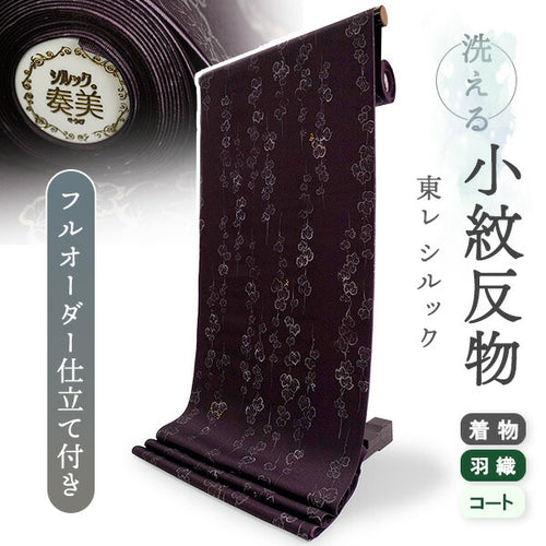 洗える着物 小紋 反物 東レシルック フルオーダー仕立て付 深紫 ぶどう ツタ 大久保信子流きもの ぴったり自分サイズにお仕立てで着姿きれい 袷も単衣もオールシーズン対応
