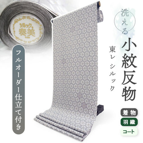 洗える着物 小紋 反物 東レシルック フルオーダー仕立て付 グレー 亀甲 花 大久保信子流きもの ぴったり自分サイズにお仕立てで着姿きれい 袷も単衣もオールシーズン対応