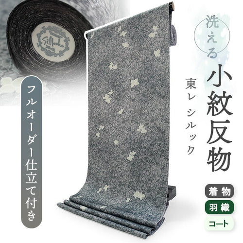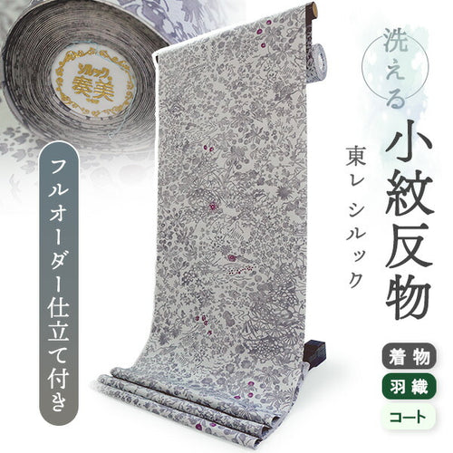 洗える着物 小紋 反物 東レシルック フルオーダー仕立て付 グレー 草花 美しいキモノ掲載 ぴったり自分サイズにお仕立てで着姿きれい 袷も単衣もオールシーズン対応
