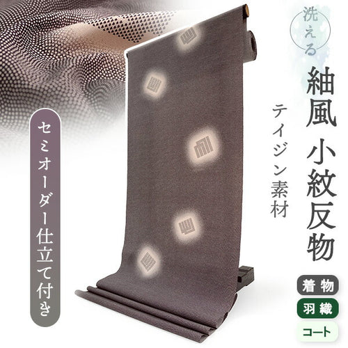 洗える 着物 反物 紬風 レディース セミオーダー 仕立て付 赤茶 鮫 源氏香 古典 XS S M L XL 袷 単衣 テイジン素材 NKF エヌケーエフ 和装 和服 女性 小紋 きもの 羽織 コート ポリエステル