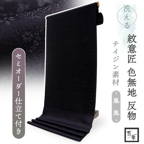 洗える色無地 鳳凰地紋 ダークネイビー 反物 セミオーダー仕立て付き 百華ブランドの上品な紋意匠 高級感あるテイジン素材の洗えるポリエステル着物 フォーマル・セミフォーマルに レディース