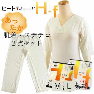 肌着 ステテコ 冬用 あったか 2点セット M L ヒート+ふぃっと 東レソフトサーモ糸使用 和装インナー レース 七分丈 薄手なのに暖かい 着物 防寒 インナー 成人式 普段のお出かけ 和装下着 着物用肌着