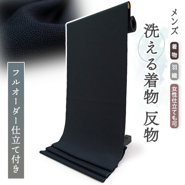 洗える着物反物 男物 メンズ フルオーダー仕立て付き ダークネイビー 鮫 江戸小紋 男性・女性兼用 ちりめん地の幅広反物 袷・単衣・羽織に自分サイズお仕立て アンサンブルにも ポリエステル