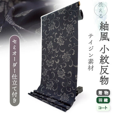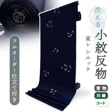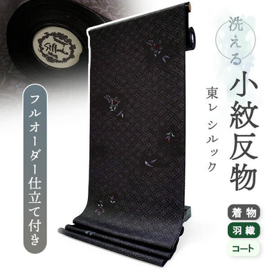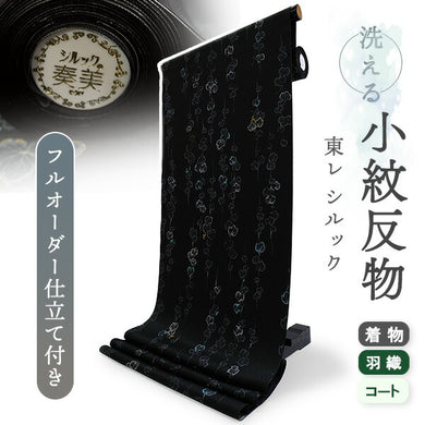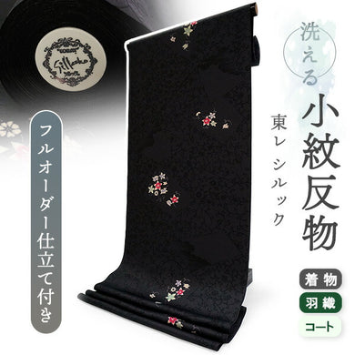 洗える着物 小紋 反物 東レシルック フルオーダー仕立て付 ブラック 裂取り 花 美しいキモノ掲載 ぴったり自分サイズにお仕立てで着姿きれい 袷も単衣もオールシーズン対応