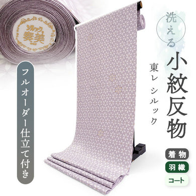 洗える着物 小紋 反物 東レシルック フルオーダー仕立て付 パープル 亀甲 花 大久保信子流きもの ぴったり自分サイズにお仕立てで着姿きれい 袷も単衣もオールシーズン対応