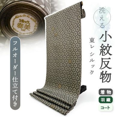 洗える着物 小紋 反物 東レシルック フルオーダー仕立て付 グレー 亀甲 花 大久保信子流きもの ぴったり自分サイズにお仕立てで着姿きれい 袷も単衣もオールシーズン対応