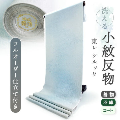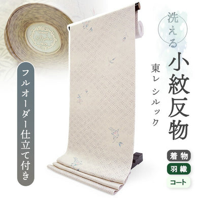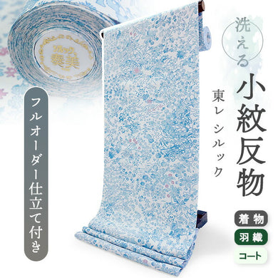 洗える着物 小紋 反物 東レシルック フルオーダー仕立て付 ホワイト ブルー 草花 美しいキモノ掲載 ぴったり自分サイズにお仕立てで着姿きれい 袷も単衣もオールシーズン対応