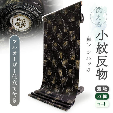 洗える着物 小紋 反物 東レシルック フルオーダー仕立て付 ブラック ぶどう ツタ 大久保信子流きもの ぴったり自分サイズにお仕立てで着姿きれい 袷も単衣もオールシーズン対応