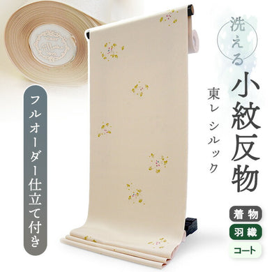 洗える着物 小紋 反物 東レシルック フルオーダー仕立て付 ベージュ 銀杏 美しいキモノ掲載 ぴったり自分サイズにお仕立てで着姿きれい 袷も単衣もオールシーズン対応