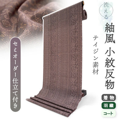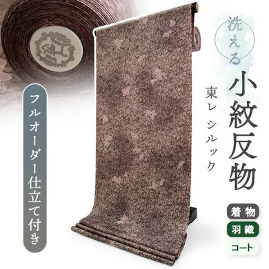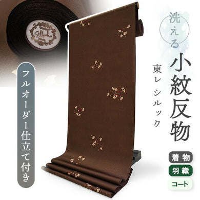 洗える着物 小紋 反物 東レシルック フルオーダー仕立て付 ブラウン リーフ 美しいキモノ掲載 ぴったり自分サイズにお仕立てで着姿きれい 袷も単衣もオールシーズン対応