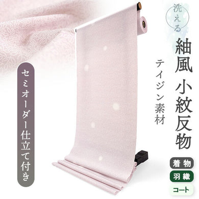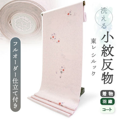 洗える着物 小紋 反物 東レシルック フルオーダー仕立て付 ピンク 裂取り 花 美しいキモノ掲載 ぴったり自分サイズにお仕立てで着姿きれい 袷も単衣もオールシーズン対応