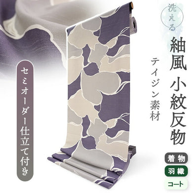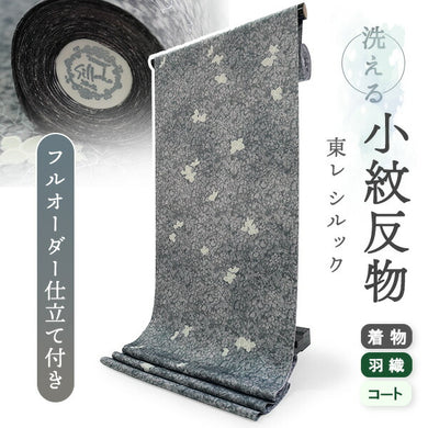 洗える着物 小紋 反物 東レシルック フルオーダー仕立て付 グレー リーフ 美しいキモノ掲載 ぴったり自分サイズにお仕立てで着姿きれい 袷も単衣もオールシーズン対応