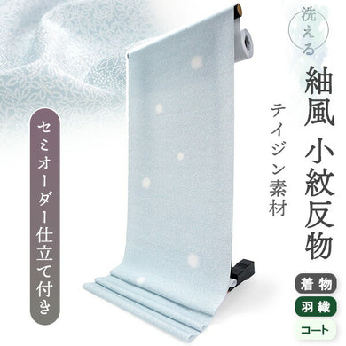 洗える 着物 反物 紬風 レディース セミオーダー 仕立て付 薄青 江戸小紋調 南天 XS S M L XL 袷 単衣 テイジン素材 NKF エヌケーエフ 和装 和服 女性 小紋 きもの 羽織 コート ポリエステル