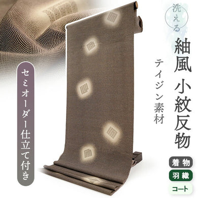 洗える 着物 反物 紬風 レディース セミオーダー 仕立て付 カーキ 鮫 源氏香 古典 XS S M L XL 袷 単衣 テイジン素材 NKF エヌケーエフ 和装 和服 女性 小紋 きもの 羽織 コート ポリエステル