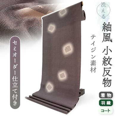 洗える着物 小紋 反物 東レシルック フルオーダー仕立て付 ブラウン 銀杏 美しいキモノ掲載 ぴったり自分サイズにお仕立てで着姿きれい 袷も単衣もオールシーズン対応