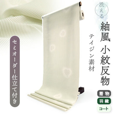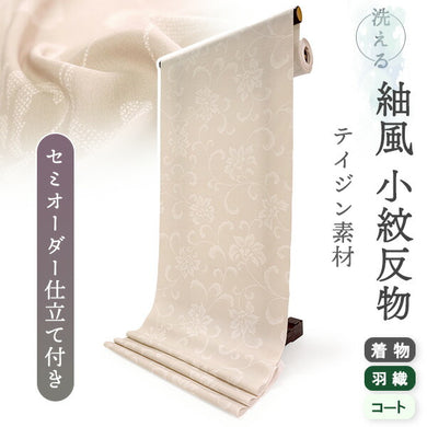 洗える 着物 反物 紬風 レディース セミオーダー 仕立て付 アイボリー 唐花 XS S M L XL 袷 単衣 テイジン素材 NKF エヌケーエフ 和装 和服 女性 小紋 きもの 羽織 コート ポリエステル