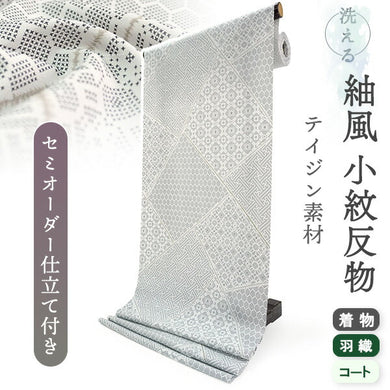 洗える 着物 反物 紬風 レディース セミオーダー 仕立て付 グレー 裂取り 亀甲 紗綾型 格天井 古典 XS S M L XL 袷 単衣 テイジン素材 NKF エヌケーエフ 和装 和服 女性 小紋 きもの 羽織 コート ポリエステル