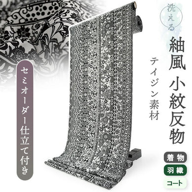 洗える 着物 反物 紬風 レディース セミオーダー 仕立て付 白黒 モノトーン 桜 菊 萩 梅 XS S M L XL 袷 単衣 テイジン素材 NKF エヌケーエフ 和装 和服 女性 小紋 きもの 羽織 コート ポリエステル