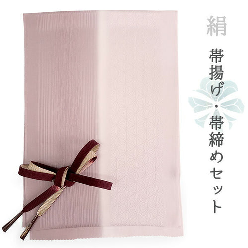 正絹 帯揚げ帯締めセット フォーマル向き 帯あげ(ピンク×紫 ぼかし麻の葉と縞柄) 丹後ちりめん 平組 帯〆 (ボルドー) 和装小物 レディース