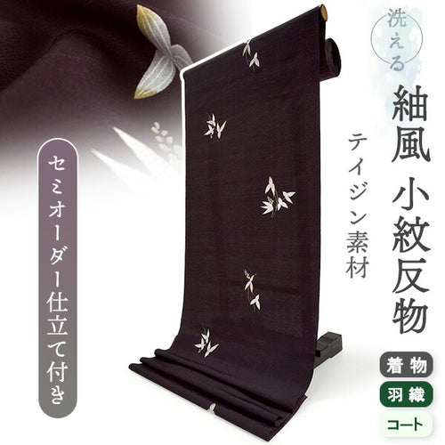 洗える 着物 反物 紬風 レディース セミオーダー 仕立て付 深紫 オモダカ XS S M L XL 袷 単衣 テイジン素材 NKF エヌケーエフ 和装 和服 女性 小紋 きもの 羽織 コート ポリエステル