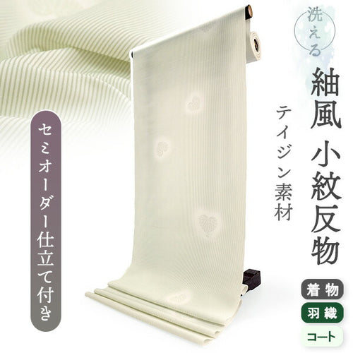 洗える 着物 反物 紬風 レディース セミオーダー 仕立て付 ベージュ オモダカ XS S M L XL 袷 単衣 テイジン素材 NKF エヌケーエフ 和装 和服 女性 小紋 きもの 羽織 コート ポリエステル