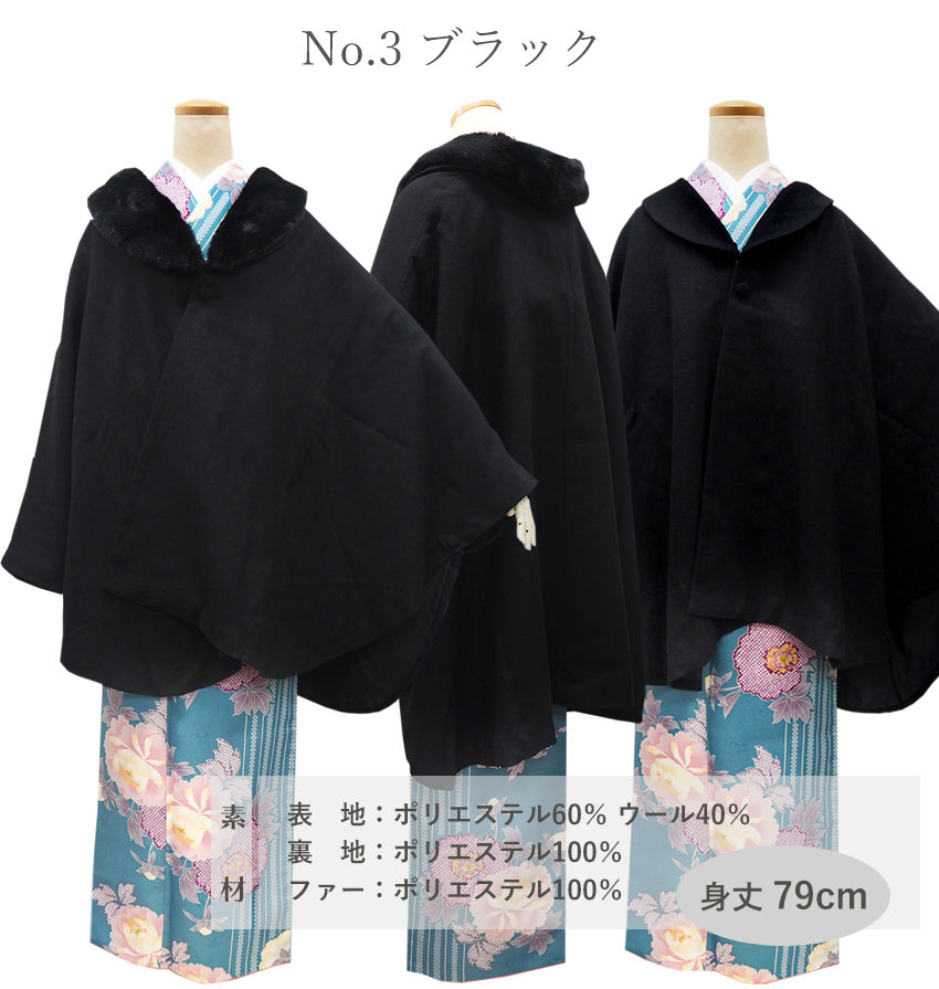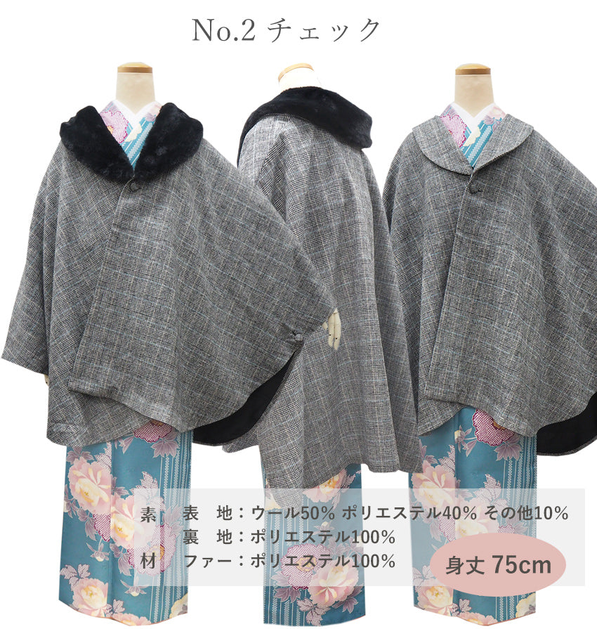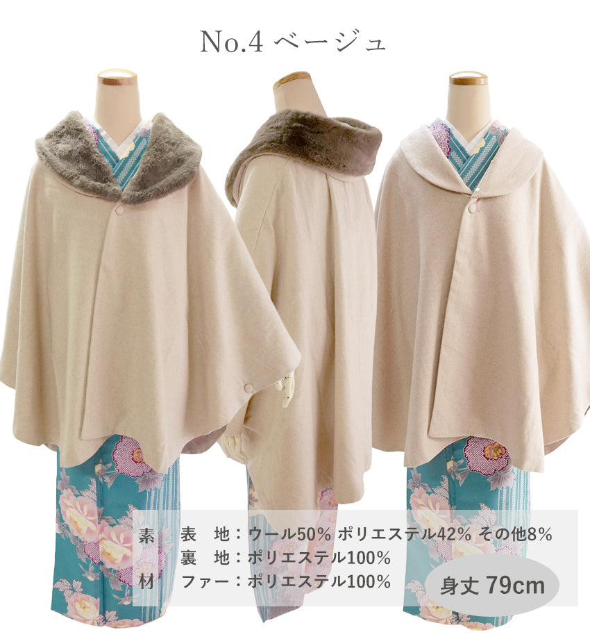 ■素材 表 地:ウール50% ポリエステル42%、その他8% 裏 地:ポリエステル100% ファー:ポリエステル100% ■サイズ フリーサイズ(適応身長:152〜165cm) 身丈:79cm |
