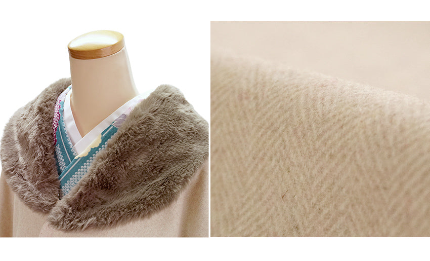 ■素材 表 地:ポリエステル60% ウール40% 裏 地:ポリエステル100% ファー:ポリエステル100% ■サイズ フリーサイズ(適応身長:152〜165cm) 身丈:79cm |