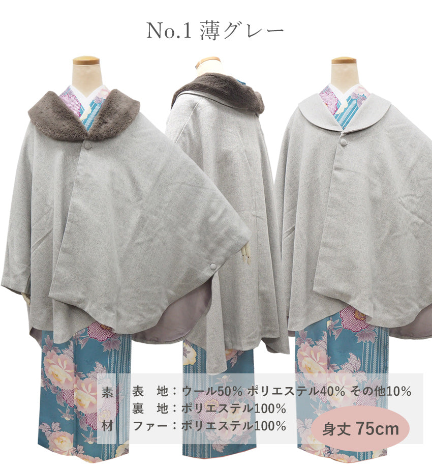 ■素材 表 地:ウール40% ポリエステル50%、その他10% 裏 地:ポリエステル100% ファー:ポリエステル100% ■サイズ フリーサイズ(適応身長:152〜165cm) 身丈:75cm |