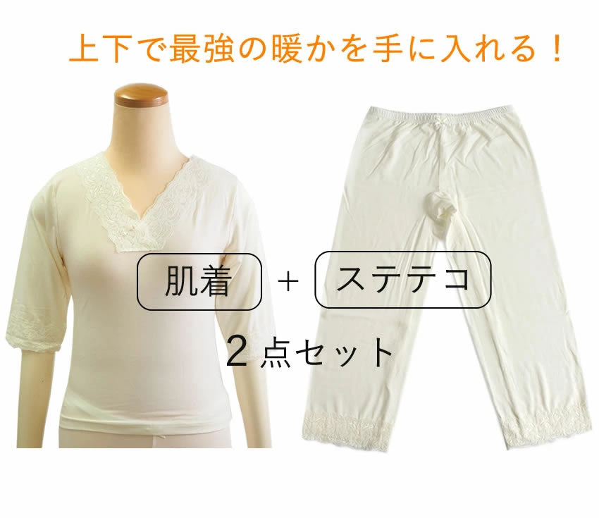 【肌着】 Mサイズ:バスト79〜87cm/身長:150〜162cm Lサイズ:バスト86〜94cm/身長:155〜167cm 【ステテコ】 Mサイズ:ヒップ87〜95cm/身長:150〜162cm Lサイズ:ヒップ92〜100cm/身長:155〜167cm |