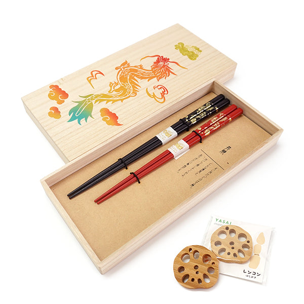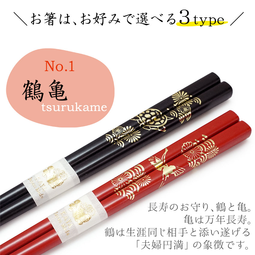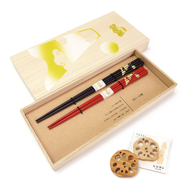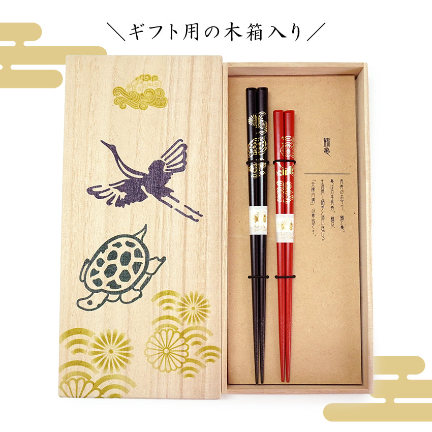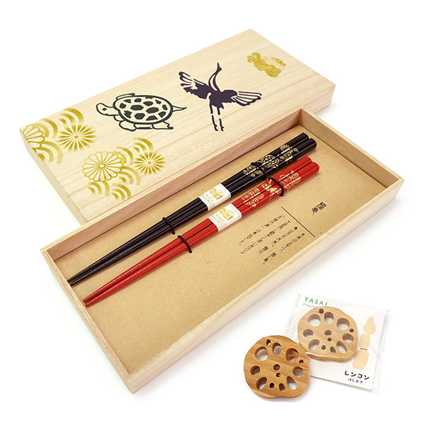 長寿や幸運を願う夫婦箸と箸置きのセット。