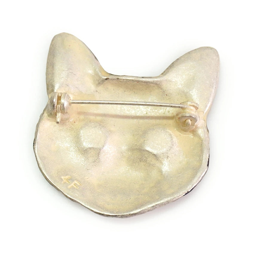 こちらをじっと見つめるような、あいくるしい表情の猫のブローチです。