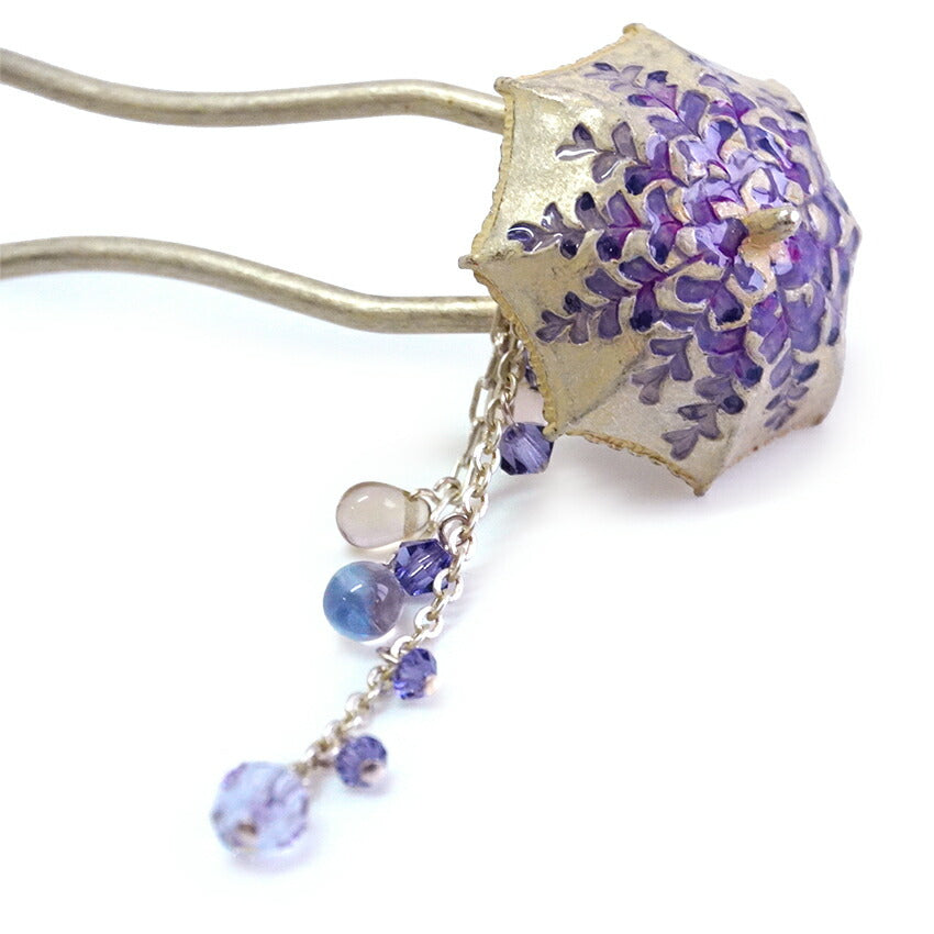 藤の花があしらわれた傘を表現した個性派髪飾りです。