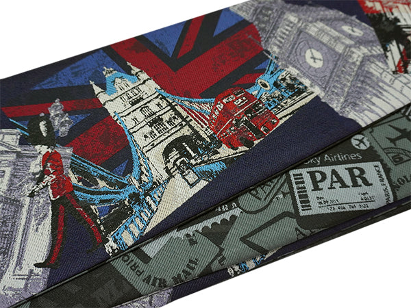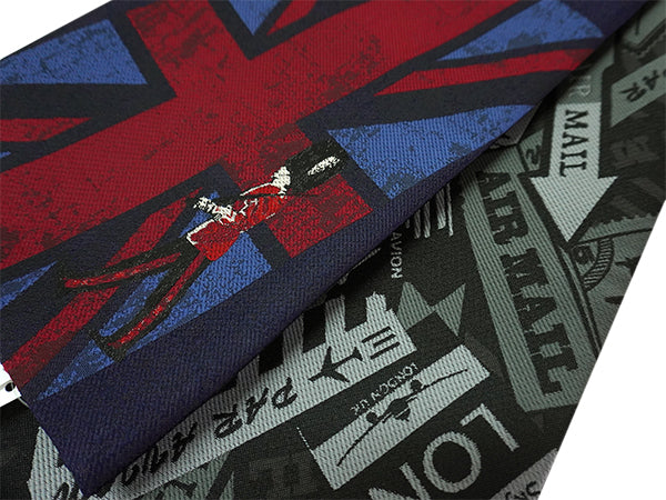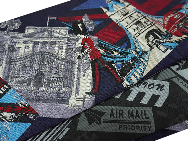表:ネイビーを地色にロンドンの風景がおしゃれに織り込まれています。LONDONの街を歩いている楽しい気持ちを味わえます! 裏:グレー地にAIR MAILの柄がおしゃれ。シックな雰囲気で表側とはまた違った雰囲気です。 |