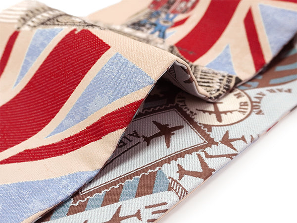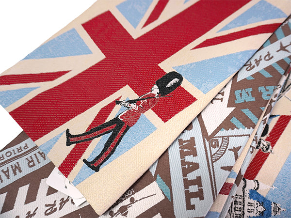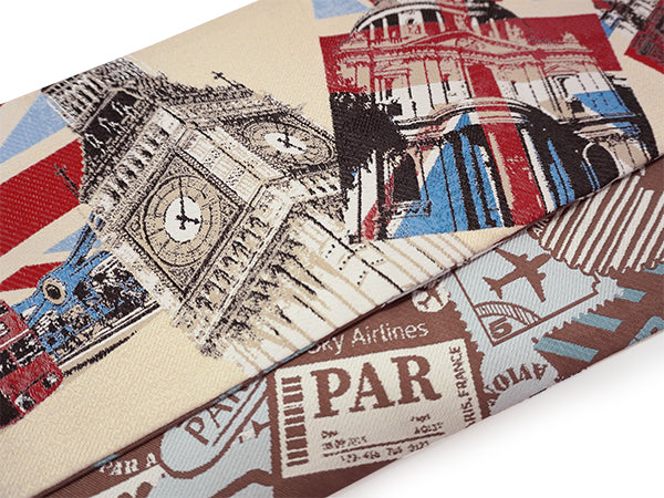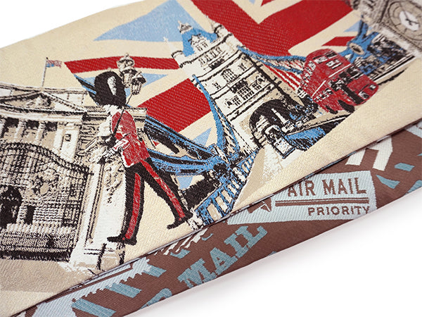 表:薄ベージュを地色にロンドンの風景がおしゃれに織り込まれています。LONDONの街を歩いている楽しい気持ちを味わえます! 裏:茶色地にAIR MAILの柄がおしゃれ。シックな雰囲気で表側とはまた違った雰囲気です。 |