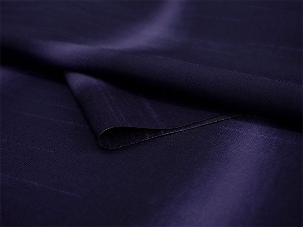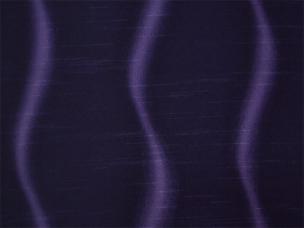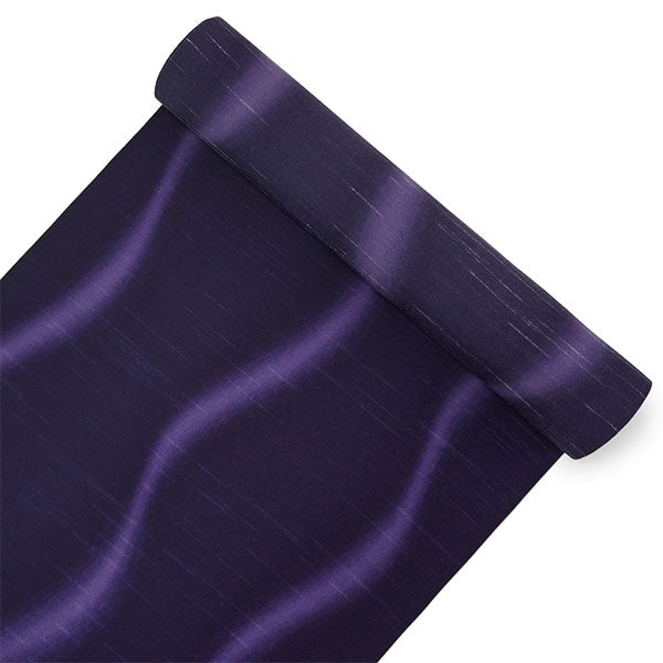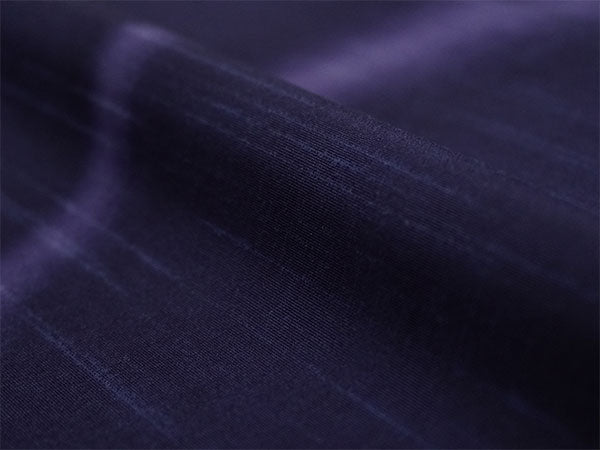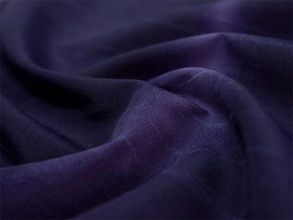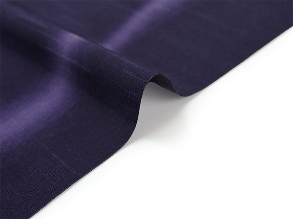 深く鮮やかな紫紺にほの光るような紫の暈しで立涌文様が描かれています。 こっくりした色味とシンプルな柄ゆきが品良い光沢感と紬の風合いをくっきり引き立て、生地感の良さを楽しめます。 |