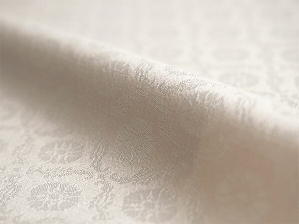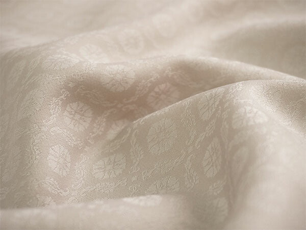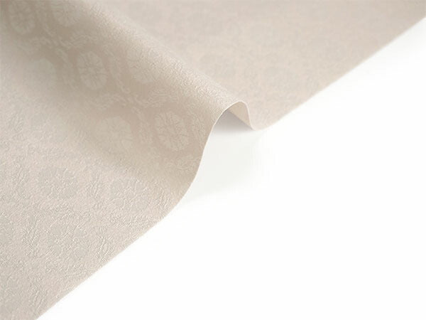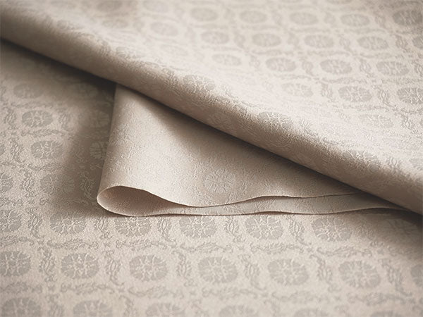 生成色 整然とした小葵地紋が品格を感じさせる雰囲気です。 深みのある地色の古典柄と上品な光沢感が相まって、品よく大人びた魅力があります。 しっかり厚みのある柔らかな生地感で、手触りなめらかな色無地です。 |