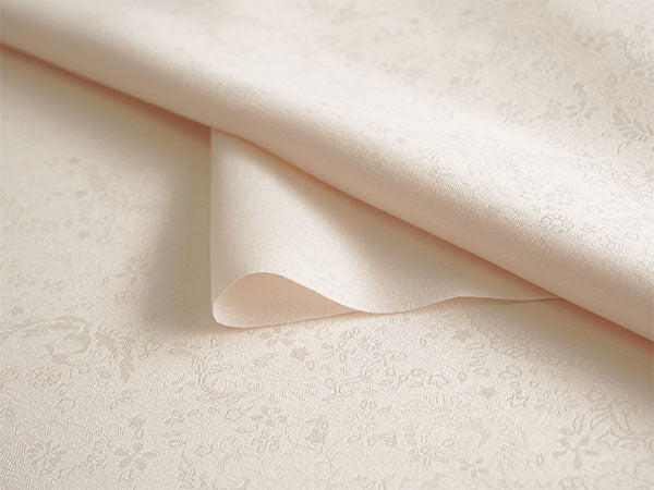 枯野色(淡くベージュがかった白色) 繊細な鳳凰と草花の紋が華やかで高級感のある雰囲気です。 深みのある地色の古典柄と上品な光沢感が相まって、品よく大人びた魅力があります。 しっかり厚みのある柔らかな生地感で、手触りなめらかな色無地です。 |