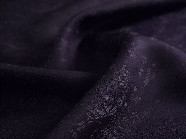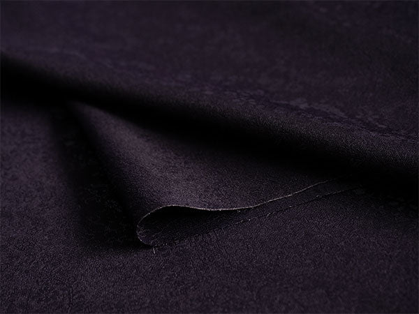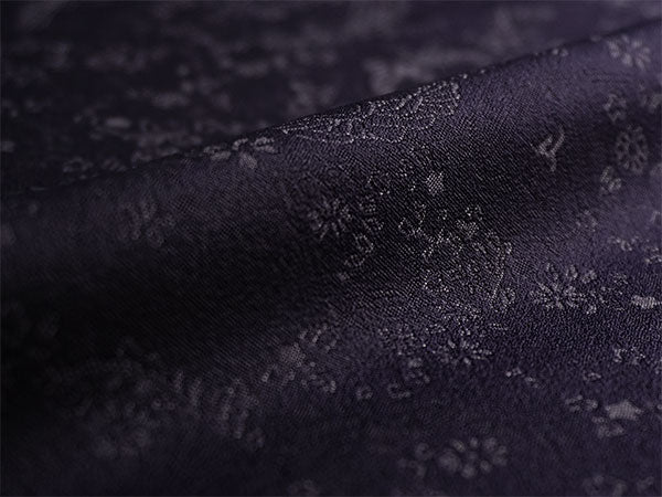 濃紺色 繊細な鳳凰と草花の紋が華やかで高級感のある雰囲気です。 深みのある地色の古典柄と上品な光沢感が相まって、品よく大人びた魅力があります。 しっかり厚みのある柔らかな生地感で、手触りなめらかな色無地です。 |