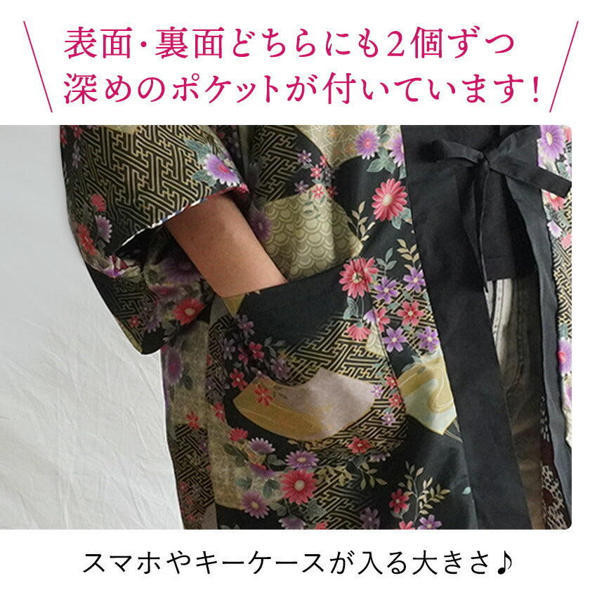 | フリーサイズ バスト:約79~94cm 対応身長:約154~162cm 身丈:約80cm、肩幅:約33cm、袖幅:約30cm 袖丈:約32cm、袖口:約20cm ポケット:横 約16cm×縦 約17cm 重さ:約400g |