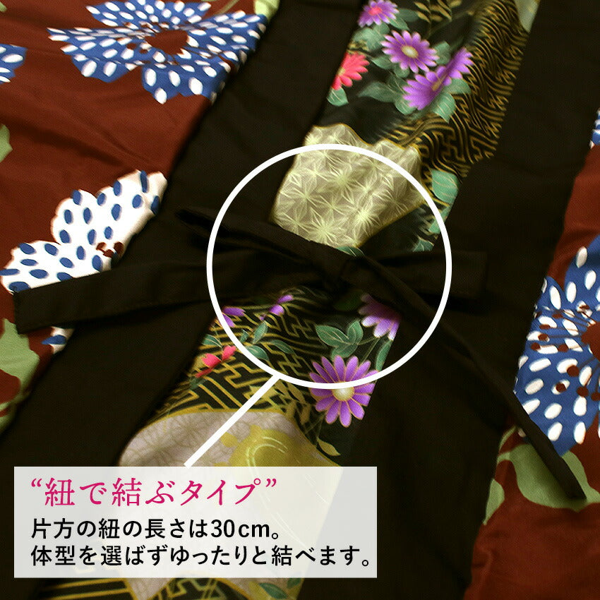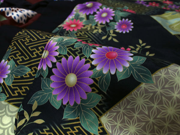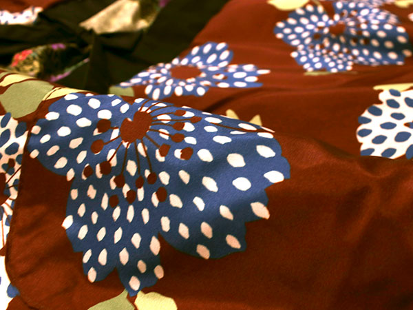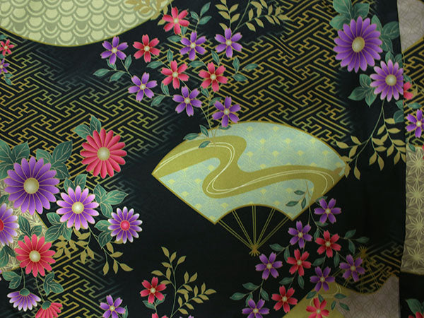 | 黒地紗綾型に扇面小花×ブラウン地ドット花 |