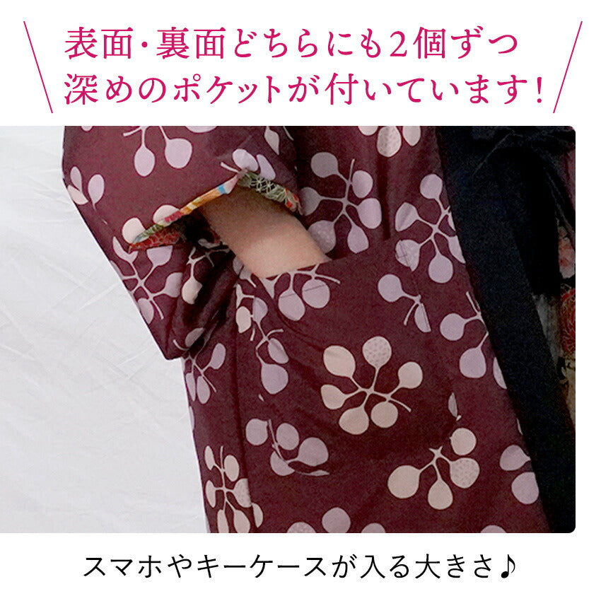 | フリーサイズ バスト:約79~94cm 対応身長:約154~162cm 身丈:約80cm、肩幅:約33cm、袖幅:約30cm 袖丈:約32cm、袖口:約20cm ポケット:横 約16cm×縦 約17cm 重さ:約400g |
