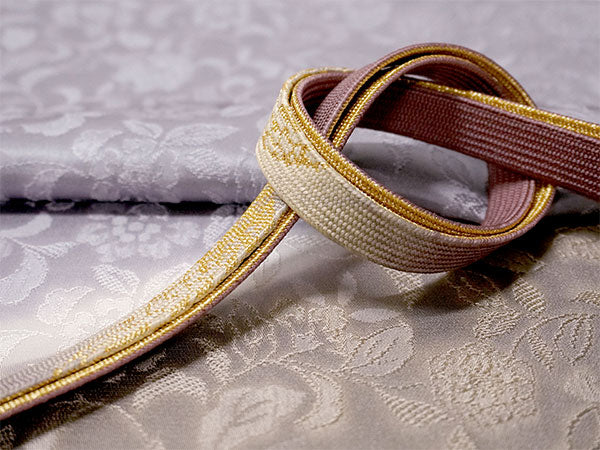 【帯揚げ】絹100%(日本製) 【帯締め】絹100% ※加工の性質上、水濡れ、汗、摩擦で色落ち、色移りしますので、ご注意ください。お手入れはドライクリーニング(セキユ系)が可能です。 |
