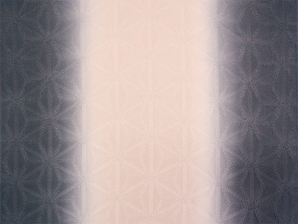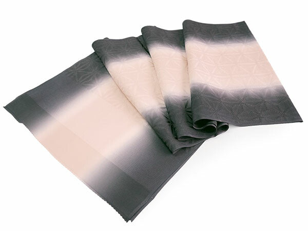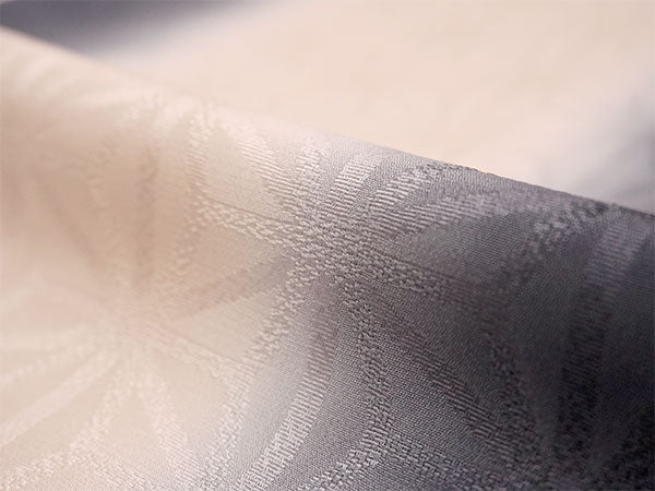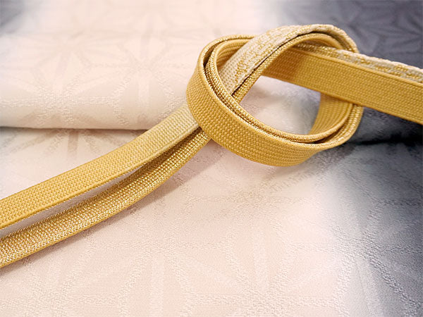 【帯揚げ】 麻の葉地紋 ベージュ×墨黒(縦暈し) 【帯締め】 平組 薄黄×オフホワイト(裏面ゴールド) |
