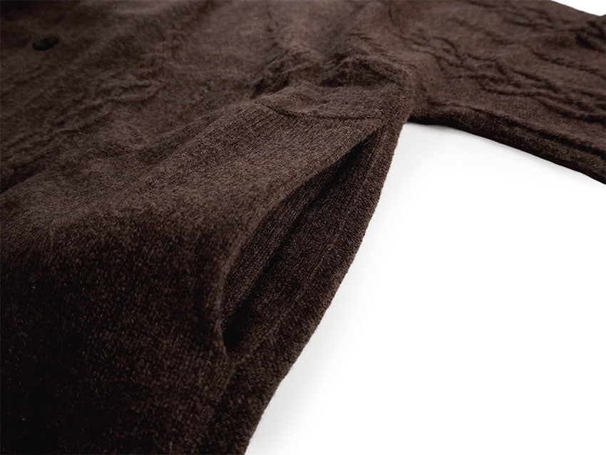 • 画像をギャラリービューアに読み込む, カーディガン 和装コート ブラウン YOUTOWA 継ぎ目のない求心編みのウール和装カーディガン 洋服にも合うモードでお洒落なデザイン