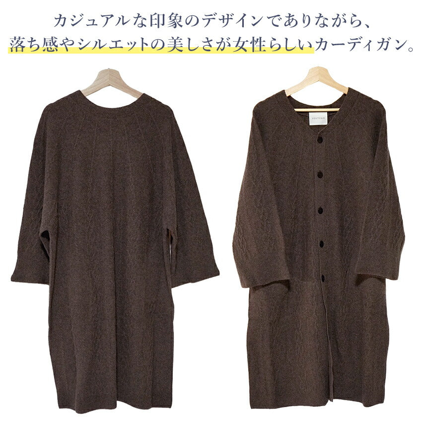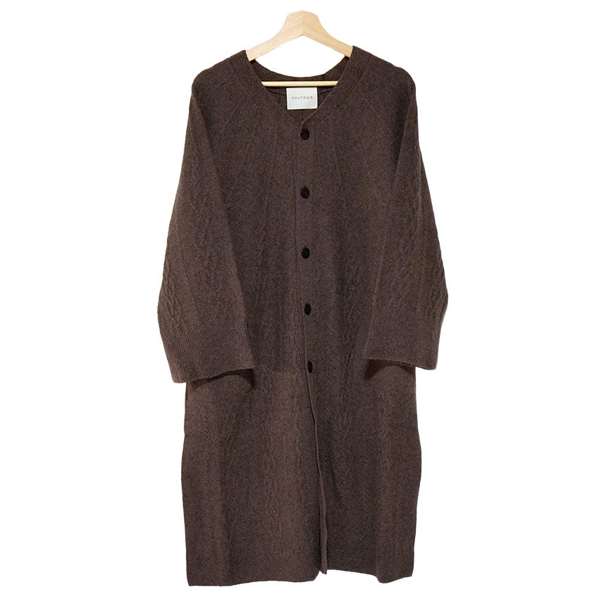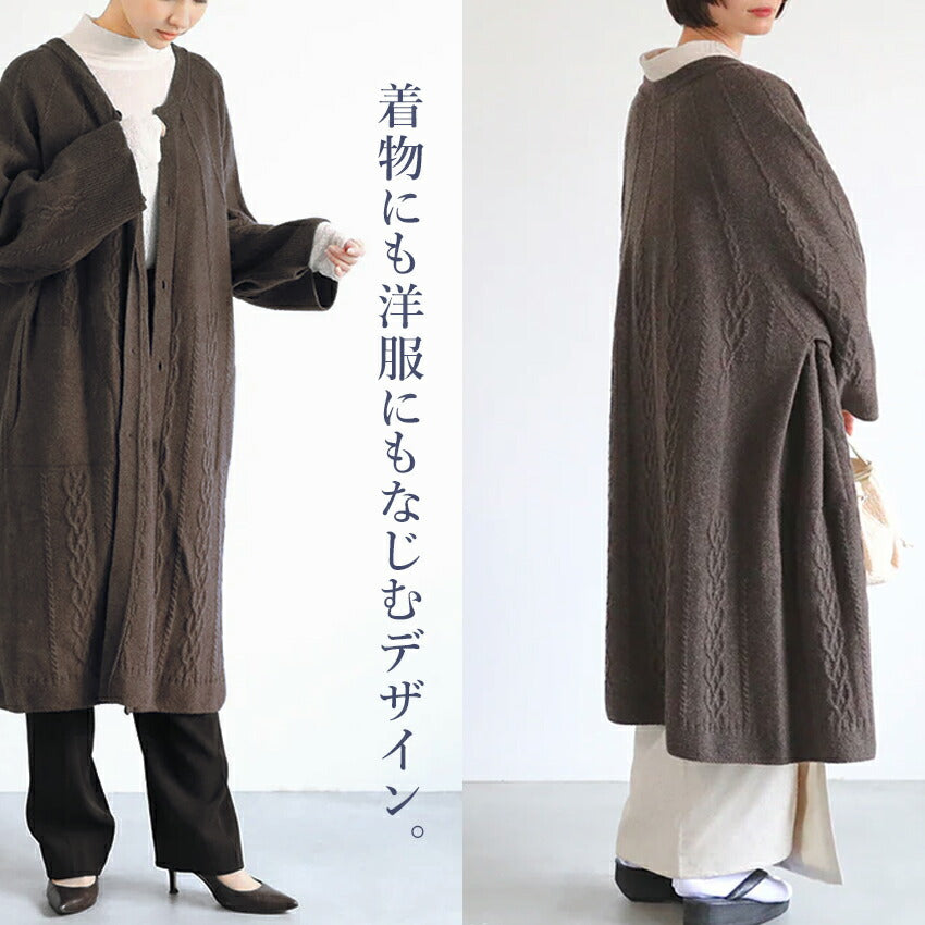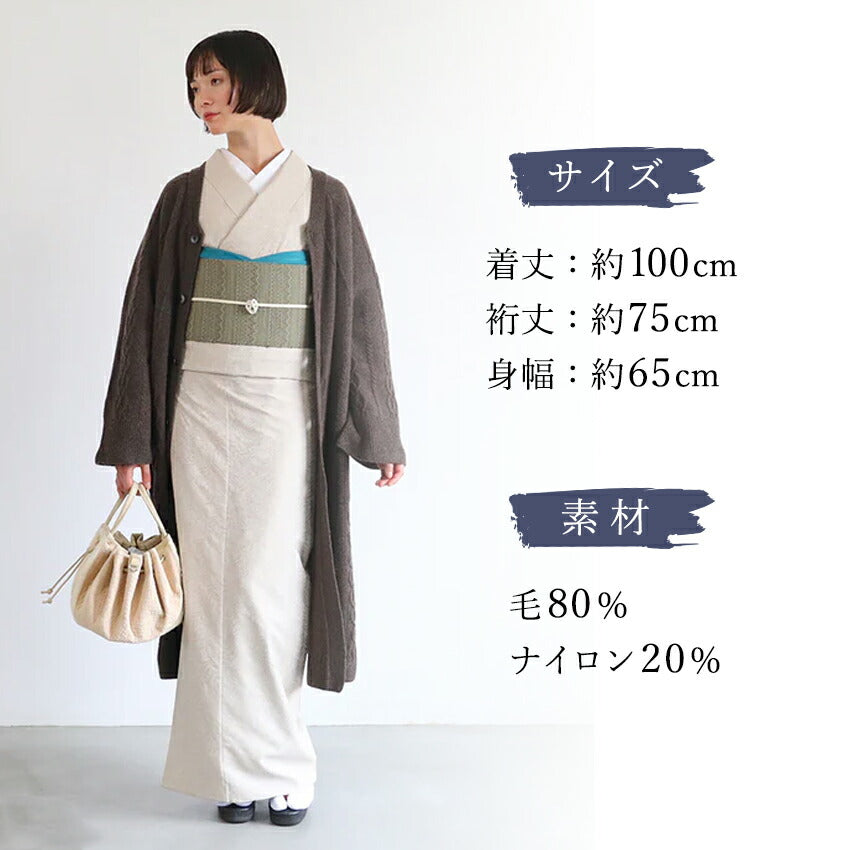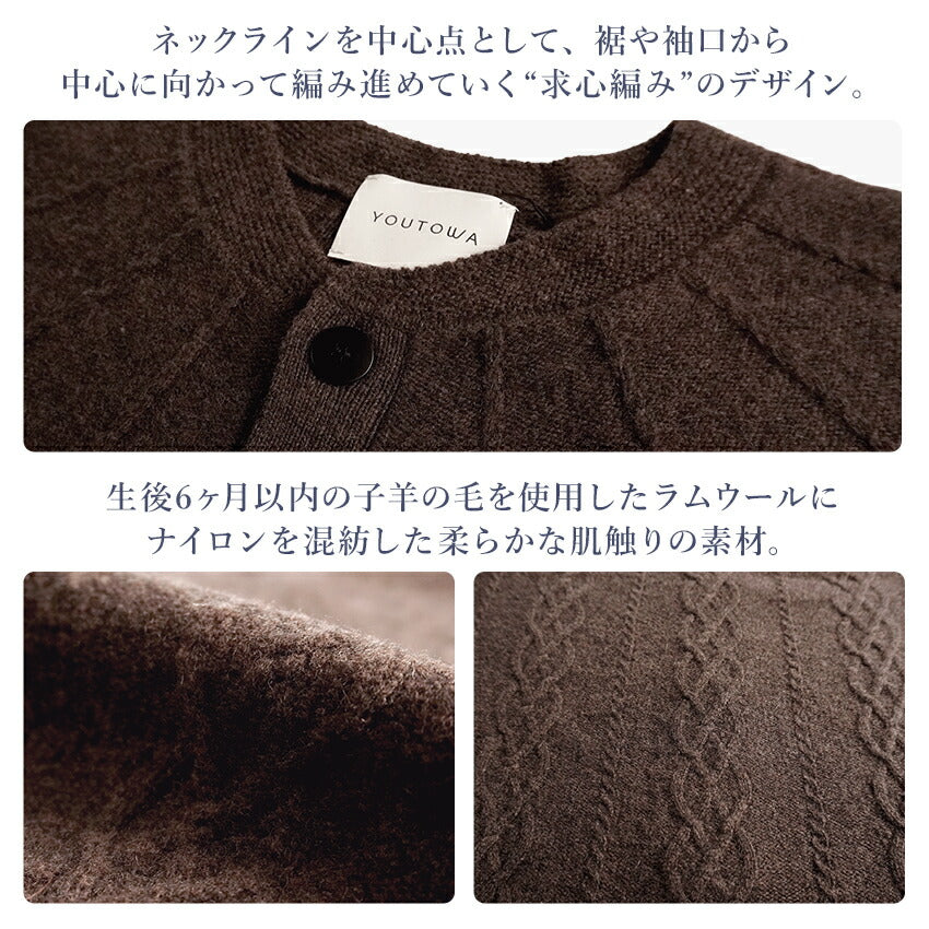 カーディガン 和装コート ブラウン YOUTOWA 継ぎ目のない求心編みのウール和装カーディガン 洋服にも合うモードでお洒落なデザイン